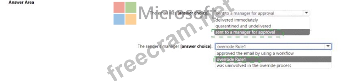 When user sent email that hit the rule, user also override policy based on the justification she wrote "Manager approved" by her self. It is not a part of the rule. Since, she override the policy by justification, mail was delivered immediately.