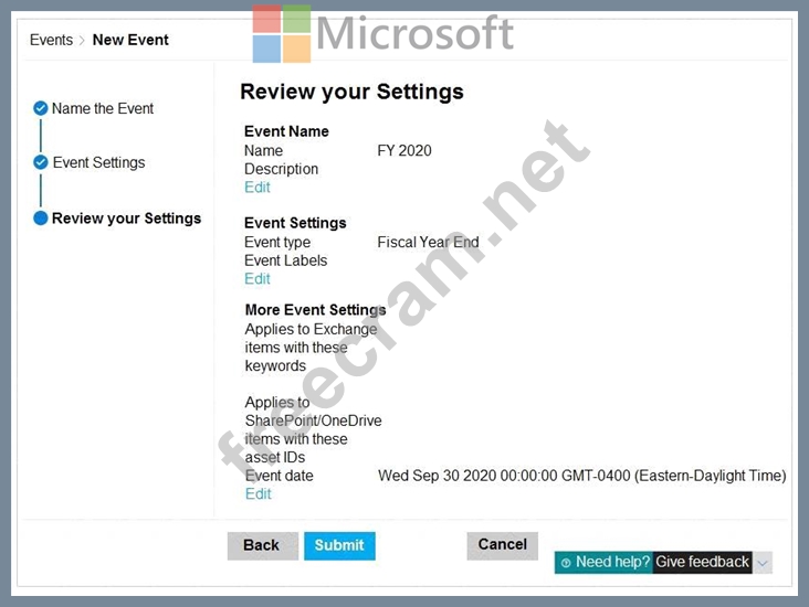 Question 56: While creating a retention label, you discover that the foll...