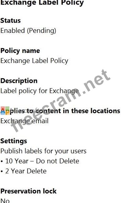 Question 36: You have the retention label policy shown in the Policy exhi...