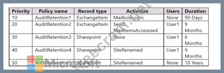 How long will the audit log records be retained for each action? To answer, select the appropriate options in the answer area.