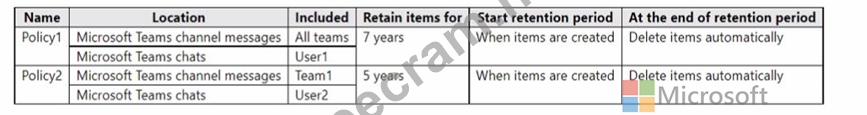 You have the retention policies shown in the following table.