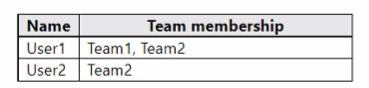 You have a Microsoft 365 E5 subscription that uses Microsoft Teams and contains the users shown in the following table.