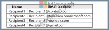 A user named User1 sends link-based, branded emails that are encrypted by using Microsoft Office 365 Advanced Message Encryption to the recipients shown in the following table.