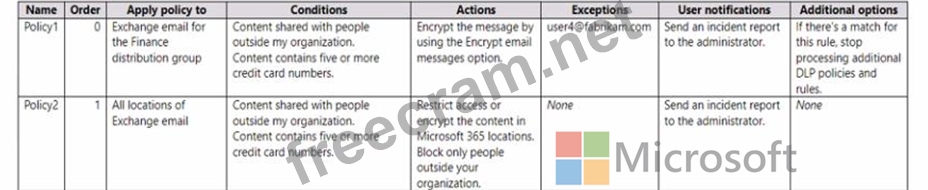 You create the data loss prevention (DLP) policies shown in the following table.