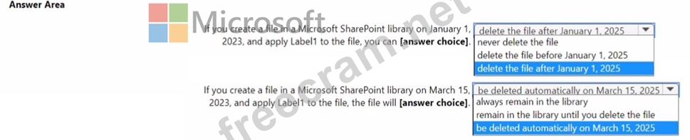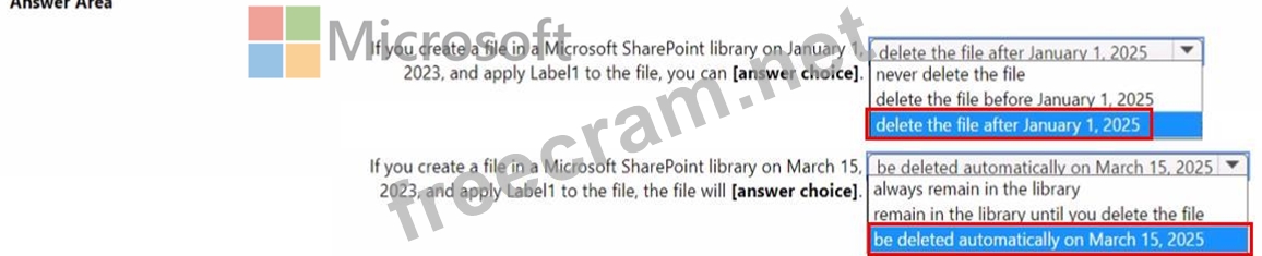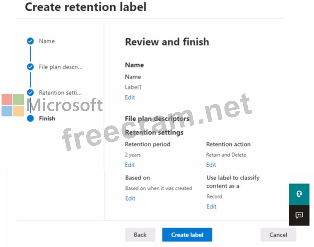 Question 36: You have the retention label policy shown in the Policy exhi...