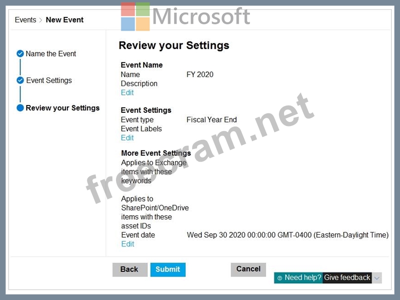 On December 1, 2020, you create the event shown in the Event exhibit. (Click the Event tab.)