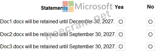 Users apply the retention label policy to files and set the asset ID as shown in the following table.