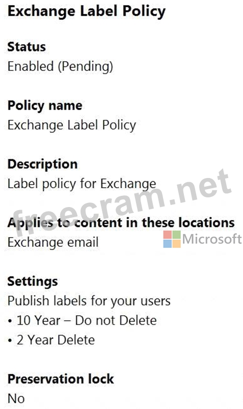 Question 98: You have a Microsoft 365 tenant that has a retention label p...