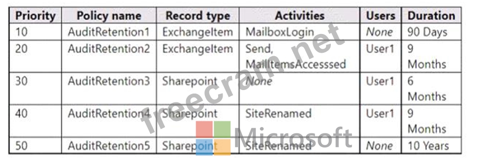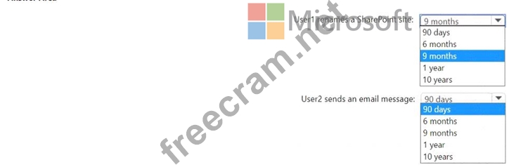 How long will the audit log records be retained for each action? To answer, select the appropriate options in the answer area.