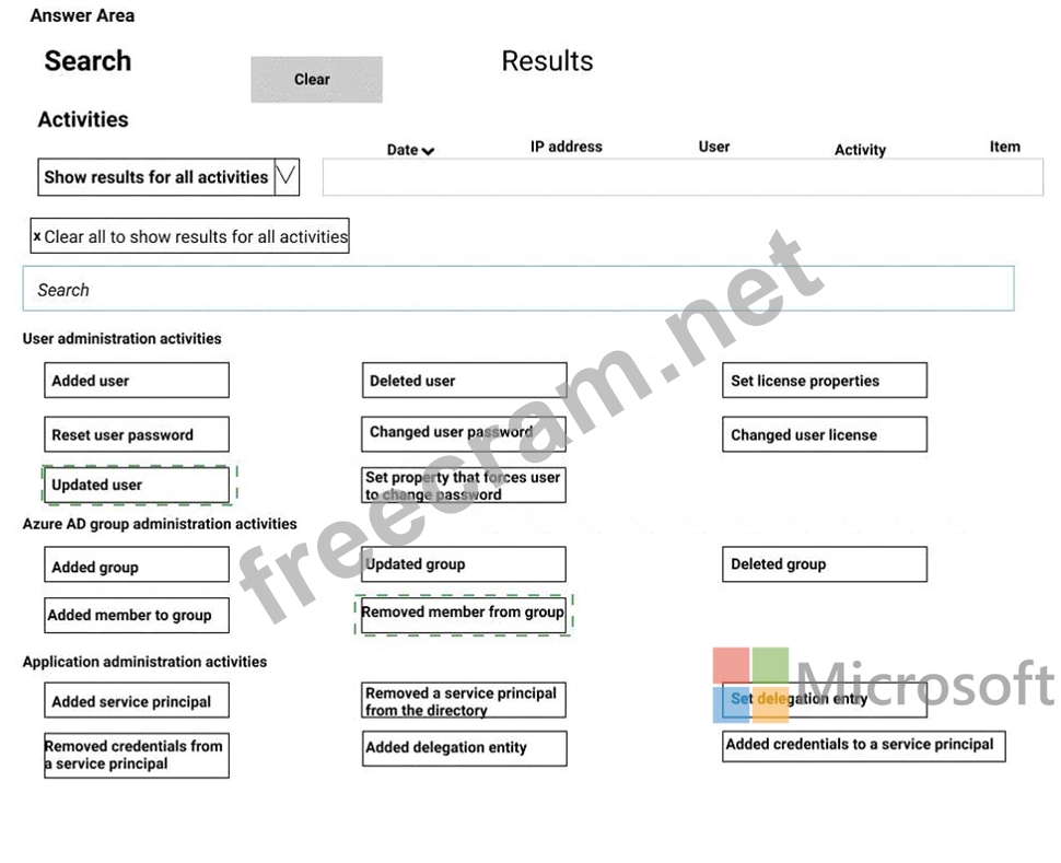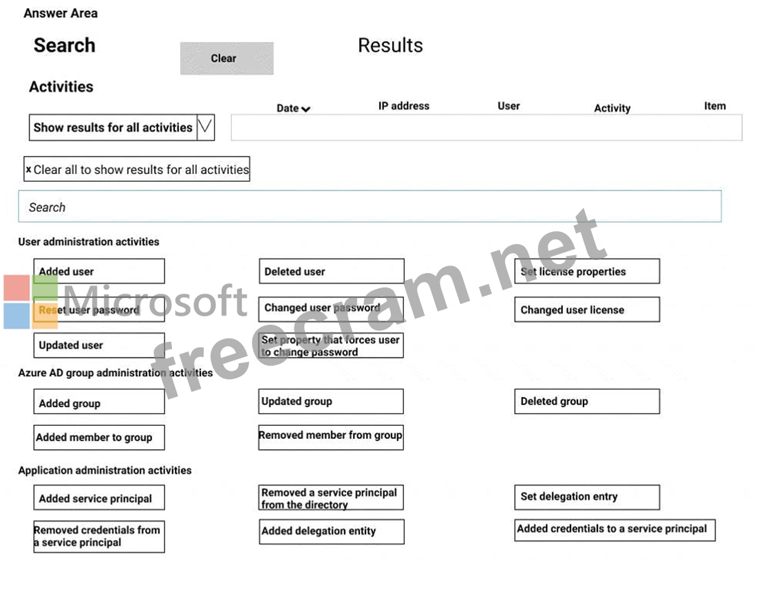 Which two activities should you use in the search? To answer, select the appropriate activities in the answer area.