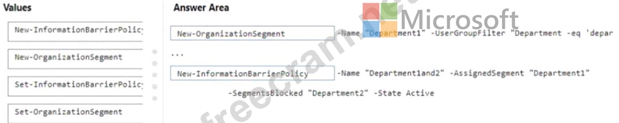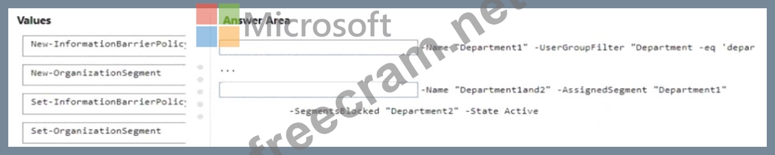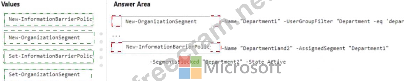 Your company has two departments named department1 and department2 and a Microsoft 365 E5 subscription.