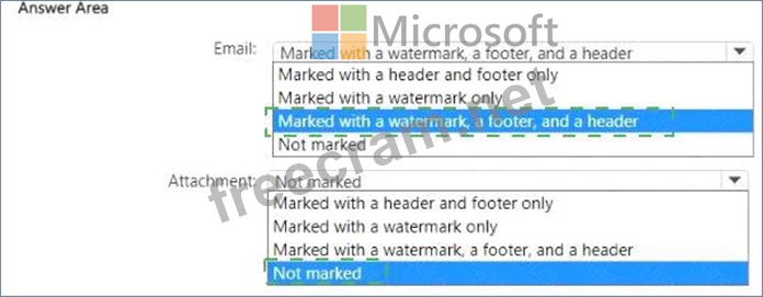 How will the email and the attachment be marked? To answer, select the appropriate options in the answer area.