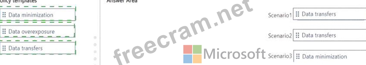Which policy template should you use for each scenario? To answer, drag the appropriate policy templates to the correct scenarios. Each template may be used once, more than once, or not at all. You may need to drag the split bar between panes or scroll to view content.