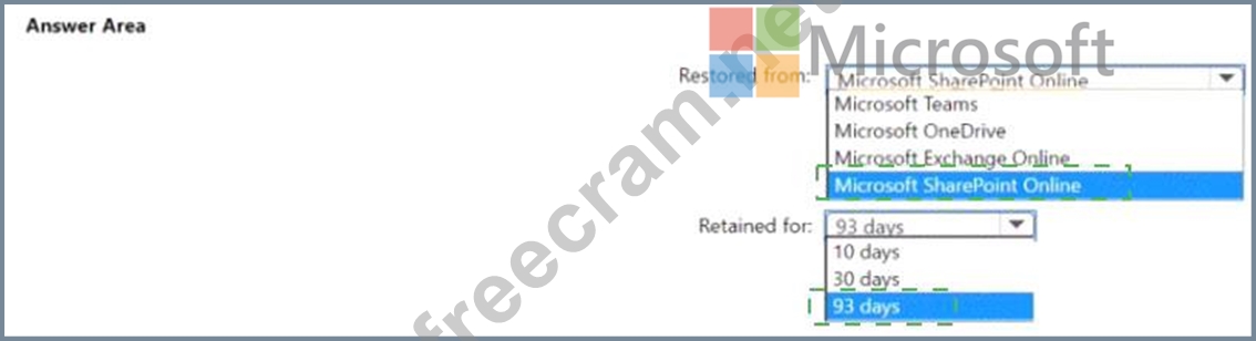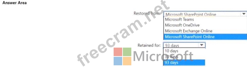 From where can the document be restored, and how long will the document be retained? To answer, select the appropriate options in the answer area.