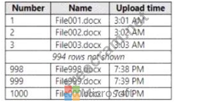 The files have sequential names and are uploaded in one-minute intervals as shown in the following table.