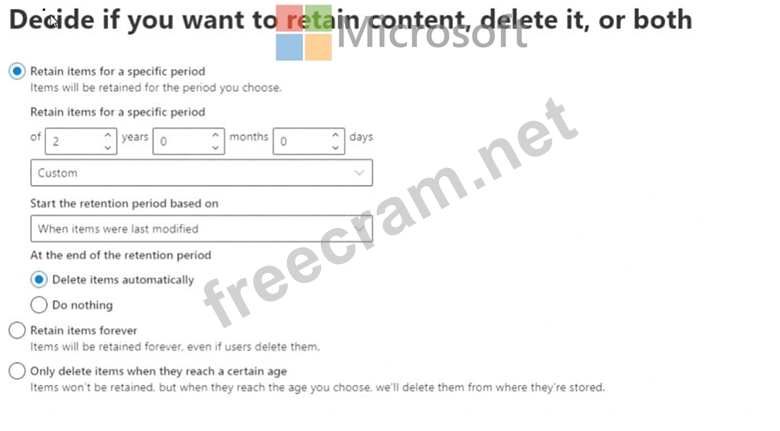 You are creating a retention policy named Retention1 as shown in the exhibit. (Click the Exhibit tab.)