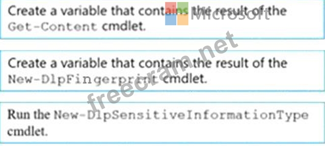 Which three actions should you perform in sequence? To answer, move the appropriate actions from the list of actions to the answer area and arrange them in the correct order.