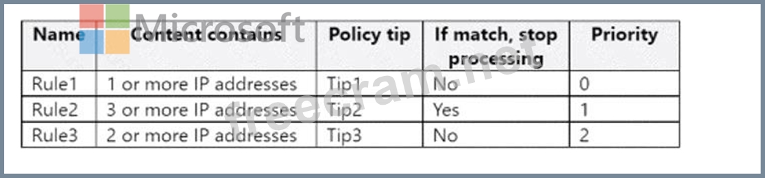 You have a data loss prevention (DLP) policy named DLP1 that has the advanced DLP rules shown in the following table.
