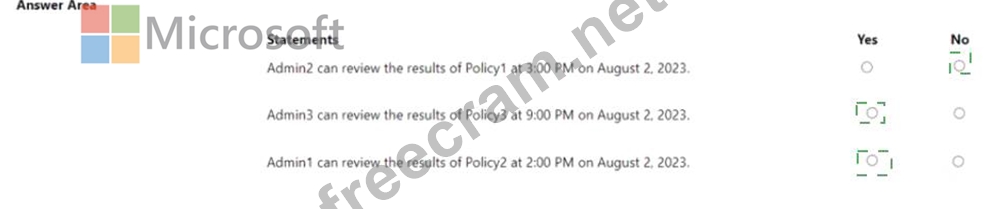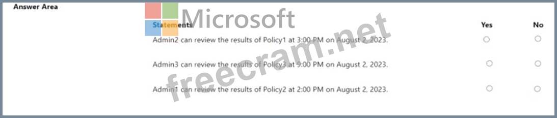 You have a Microsoft 365 E5 subscription that contains the administrators shown in the following table.