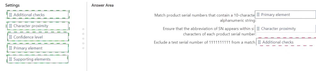 Which pattern settings should you configure for each requirement? To answer, drag the appropriate settings to the correct requirements. Each setting may be used once, more than once, or not at all. You may need to drag the split bar between panes or scroll to view content.