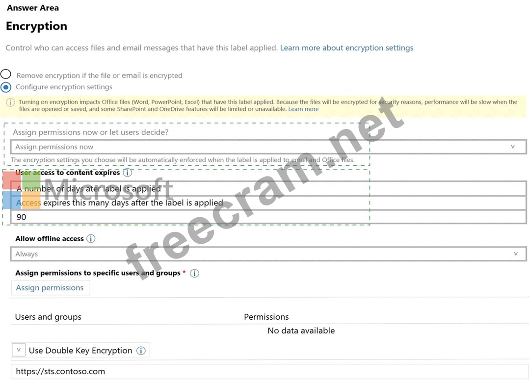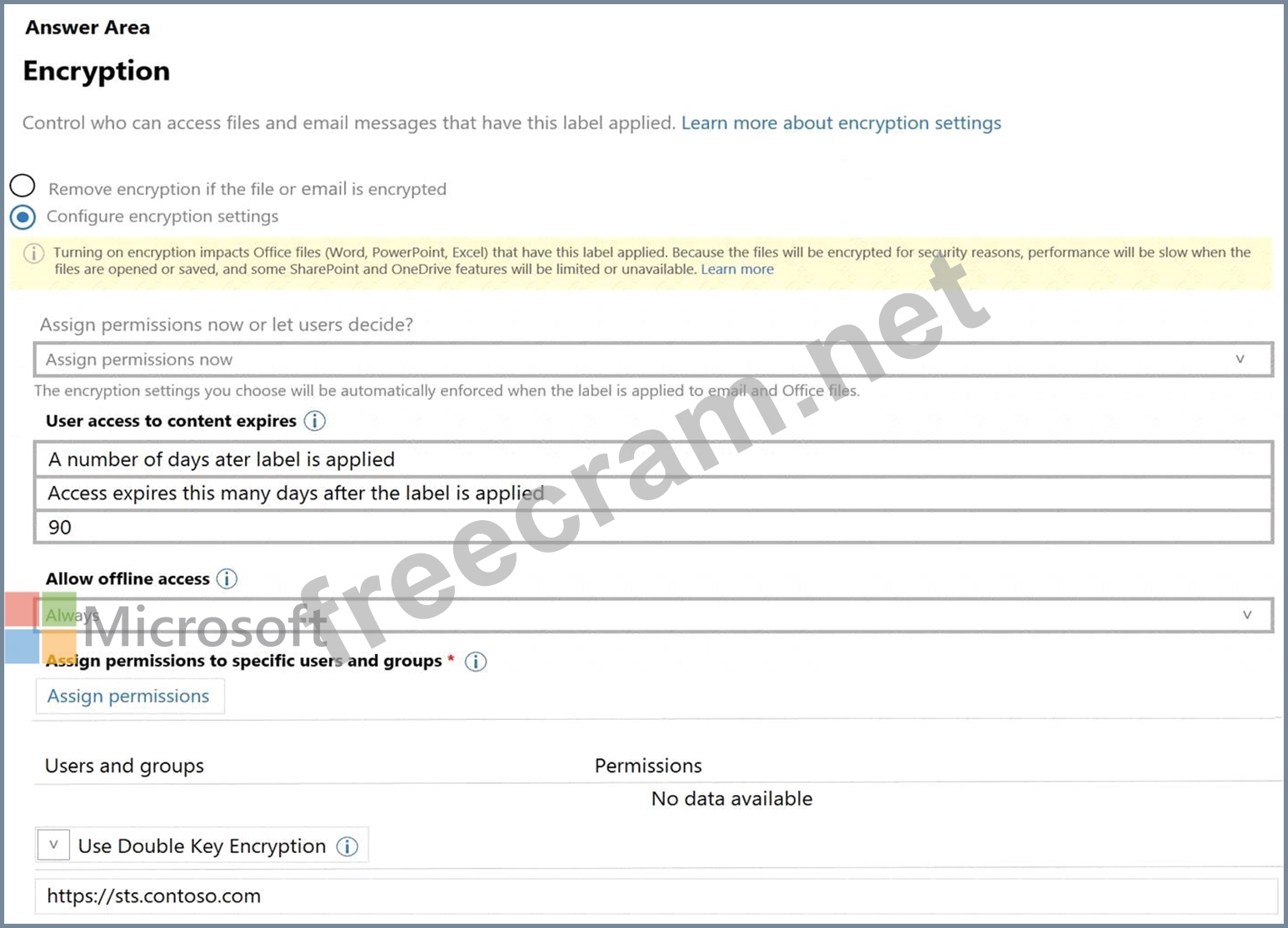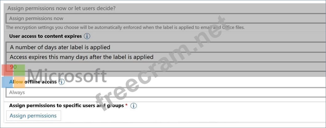 Question 23: You create a sensitivity label as shown in the Sensitivity L...