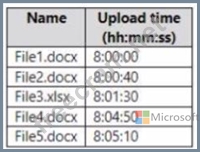 To Site1, User1 uploads the files shown in the following table.