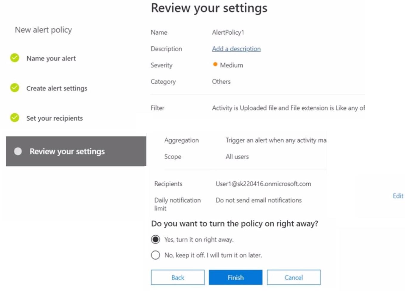Question 112: You have a Microsoft 365 alert named Alert2 as shown in the ...
