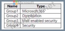 You have a Microsoft 365 E5 subscription that contains a user named User1 and the groups shown in the following table.