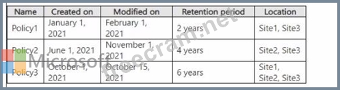 You have a Microsoft 365 E5 subscription that contains four Microsoft SharePoint Online sites named Site1, Site2, Site3, and Site4.
