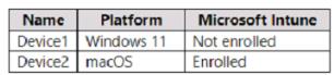 You have a Microsoft 365 E5 subscription that contains the devices shown in the following table.