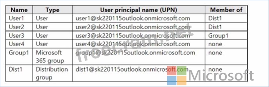 Question 11: You have a Microsoft 365 tenant that contains the users show...