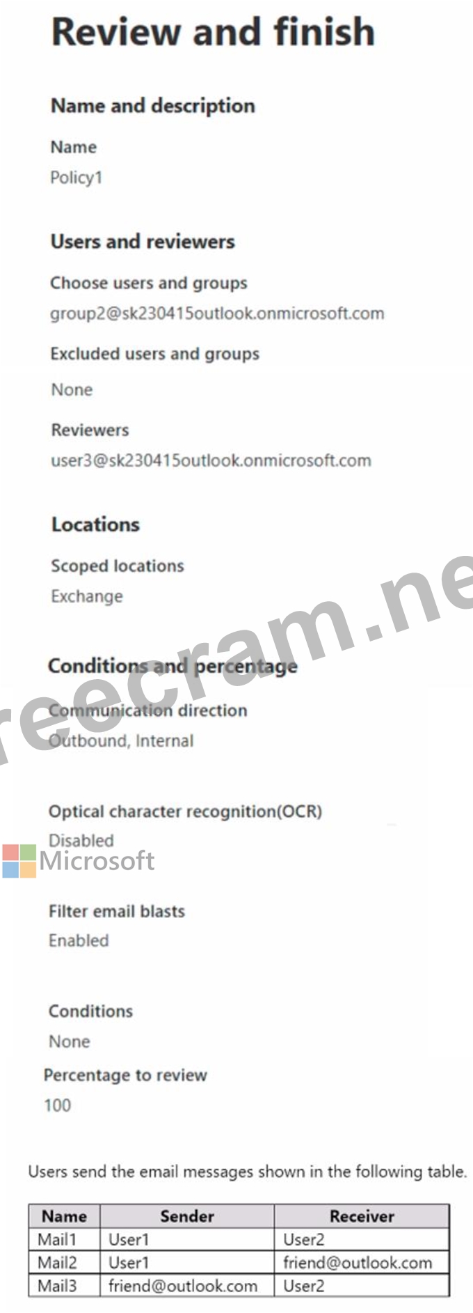 The subscription contains the communication compliance policy shown in the following exhibit.