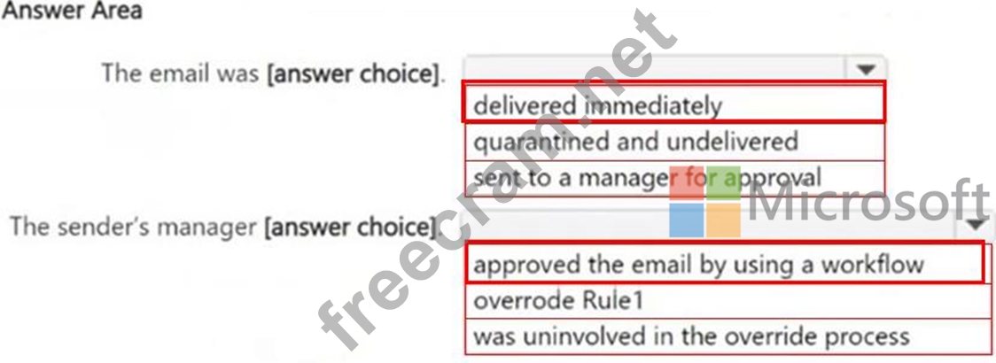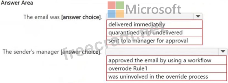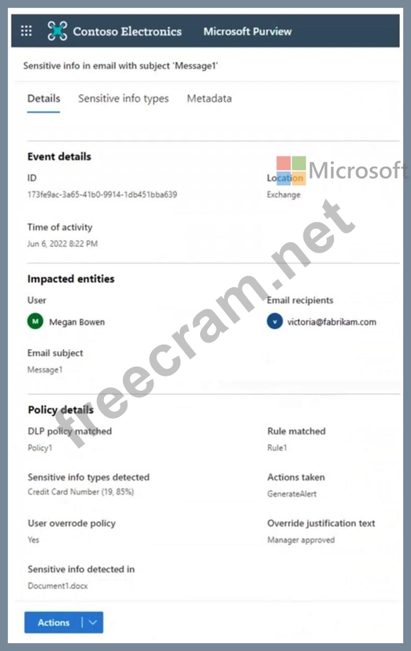 You have a Microsoft 365 E5 subscription. You receive the data loss prevention (DLP) alert shown in the following exhibit. Use the drop-down menus to select the answer choice that completes each statement based on the information presented in the graphic. NOTE: Each correct selection is worth one point.