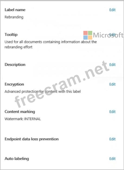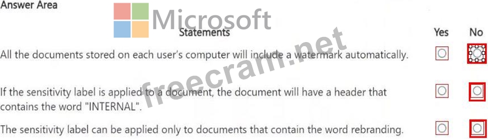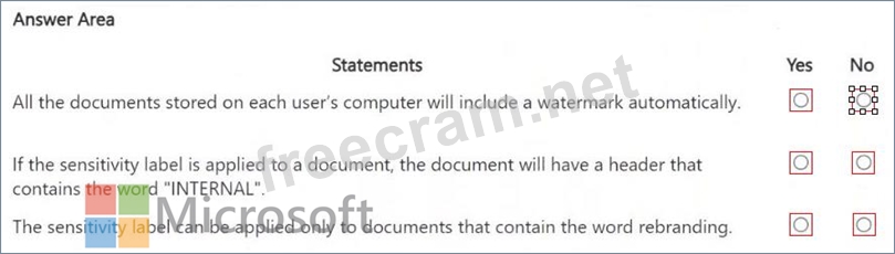 You have a Microsoft 365 sensitivity label that is published to all the users in your Microsoft Entra tenant as shown in the following exhibit. For each of the following statements, select Yes if the statement is true. Otherwise, select No.