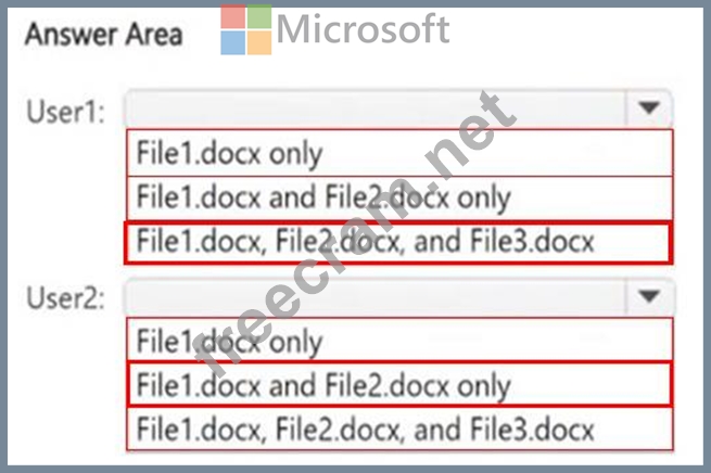 Which files can User1 and User2 open? To answer, select the appropriate options in the answer area.