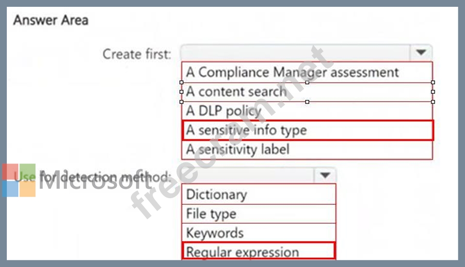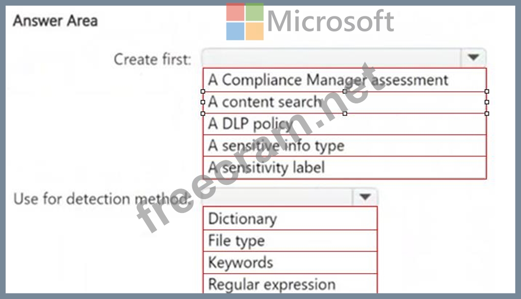 You need to meet the technical requirements for the confidential documents. What should you create first, and what should you use for the detection method? To answer, select the appropriate options in the answer area. NOTE: Each correct selection is worth one point.
