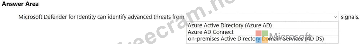 Explanation Microsoft Defender for Identity is a cloud-based security solution that leverages your on-premises Active Directory signals to identify, detect, and investigate advanced threats, compromised identities, and malicious insider actions directed at your organization.