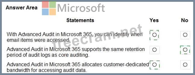 Question 15: HOTSPOT For each of the following statements, select Yes if ...