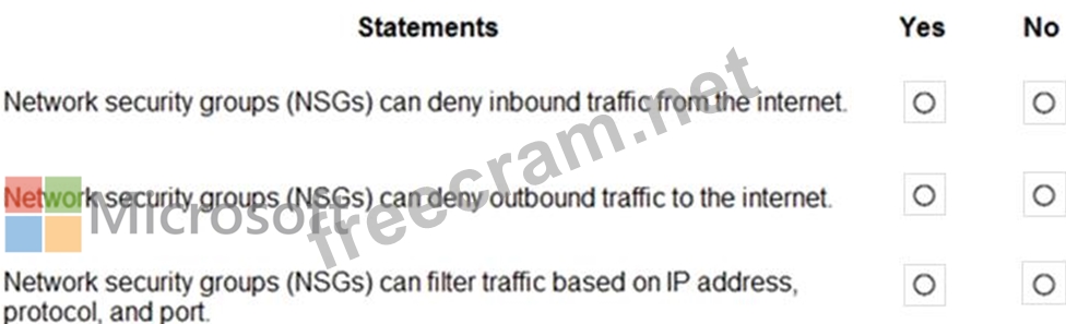For each of the following statements, select Yes if the statement is true. Otherwise, select No.