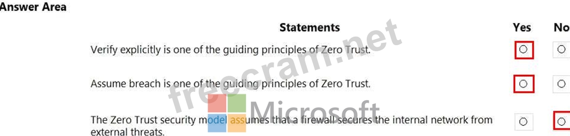 For each of the following statements, select Yes if the statement is true. Otherwise, select No.