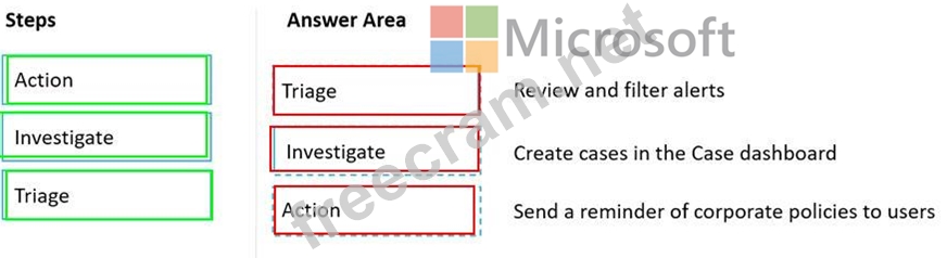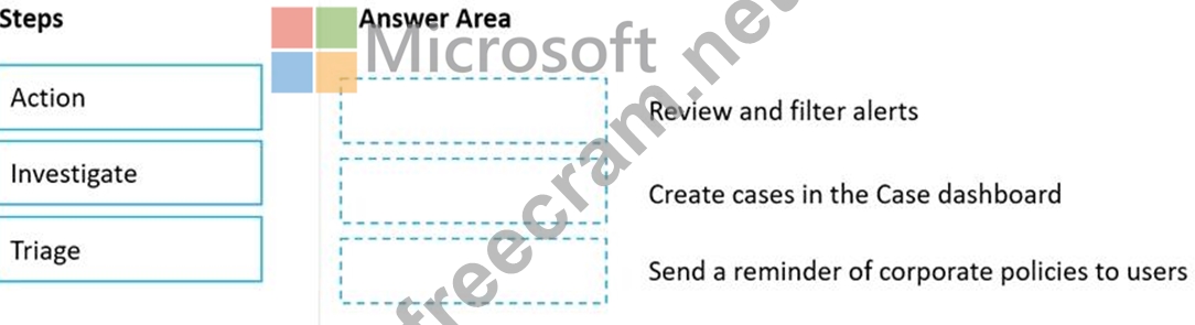 Question 11: Match the Microsoft 365 insider risk management workflow ste...