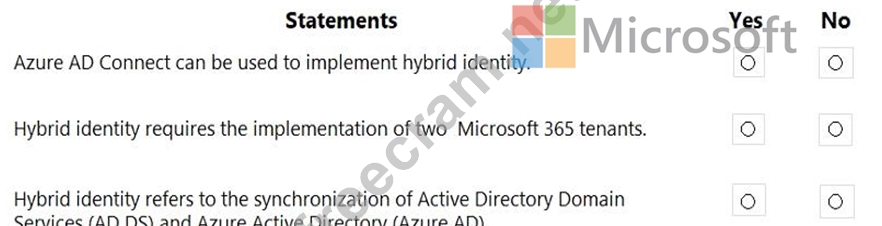For each of the following statements, select Yes if the statement is true. Otherwise, select No.