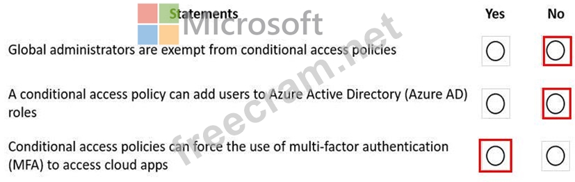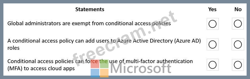For each of the following statements, select Yes if the statement is true. Otherwise, select No.