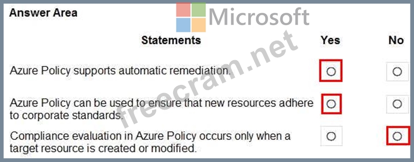Question 96: HOTSPOT For each of the following statements, select Yes if ...