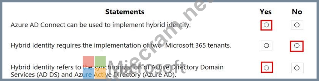 For each of the following statements, select Yes if the statement is true. Otherwise, select No.