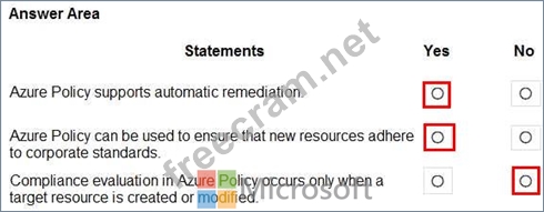 For each of the following statements, select Yes if the statement is true. Otherwise, select No.