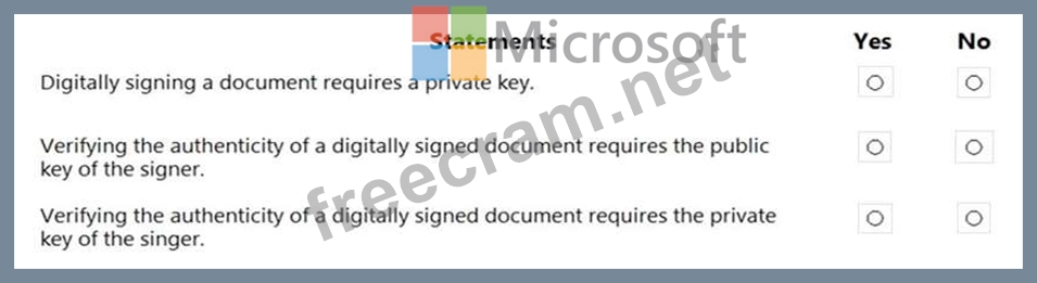 For each of the following statements, select Yes if the statement is true. Otherwise, select No.