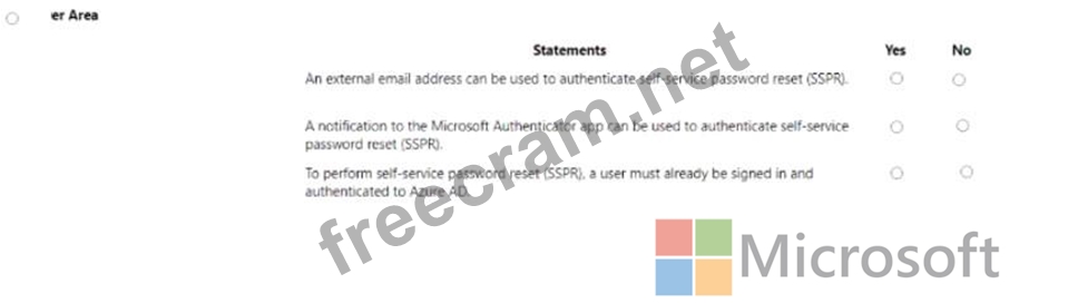 For each of the following statement, select Yes if the statement is true Otherwise, select No.