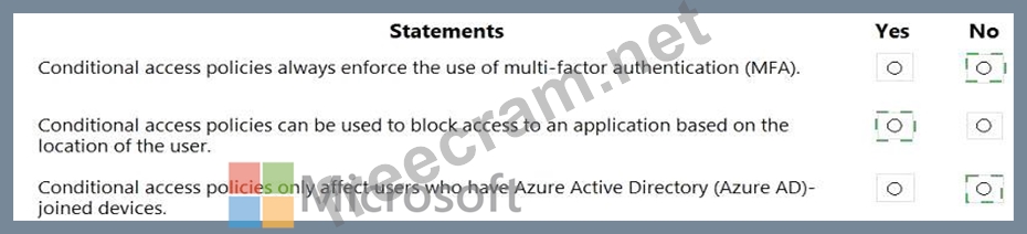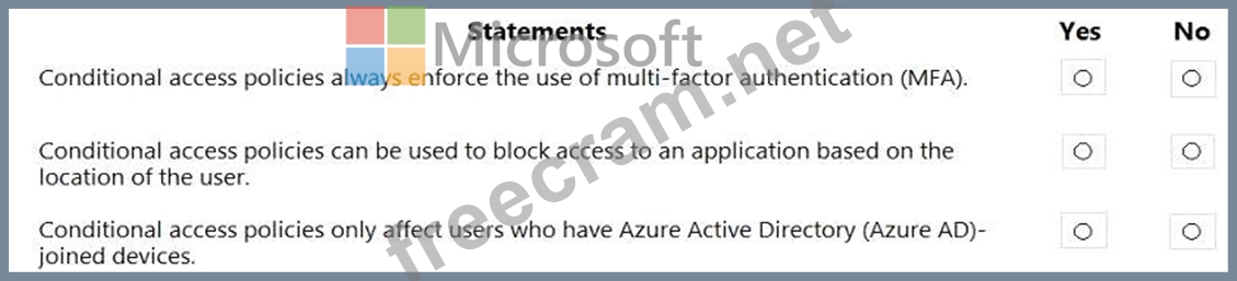 For each of the following statements, select Yes if the statement is true. Otherwise, select No.