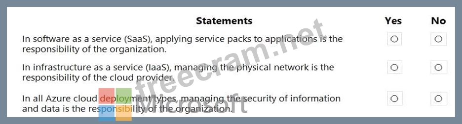 For each of the following statements, select Yes if the statement is true. Otherwise, select No.